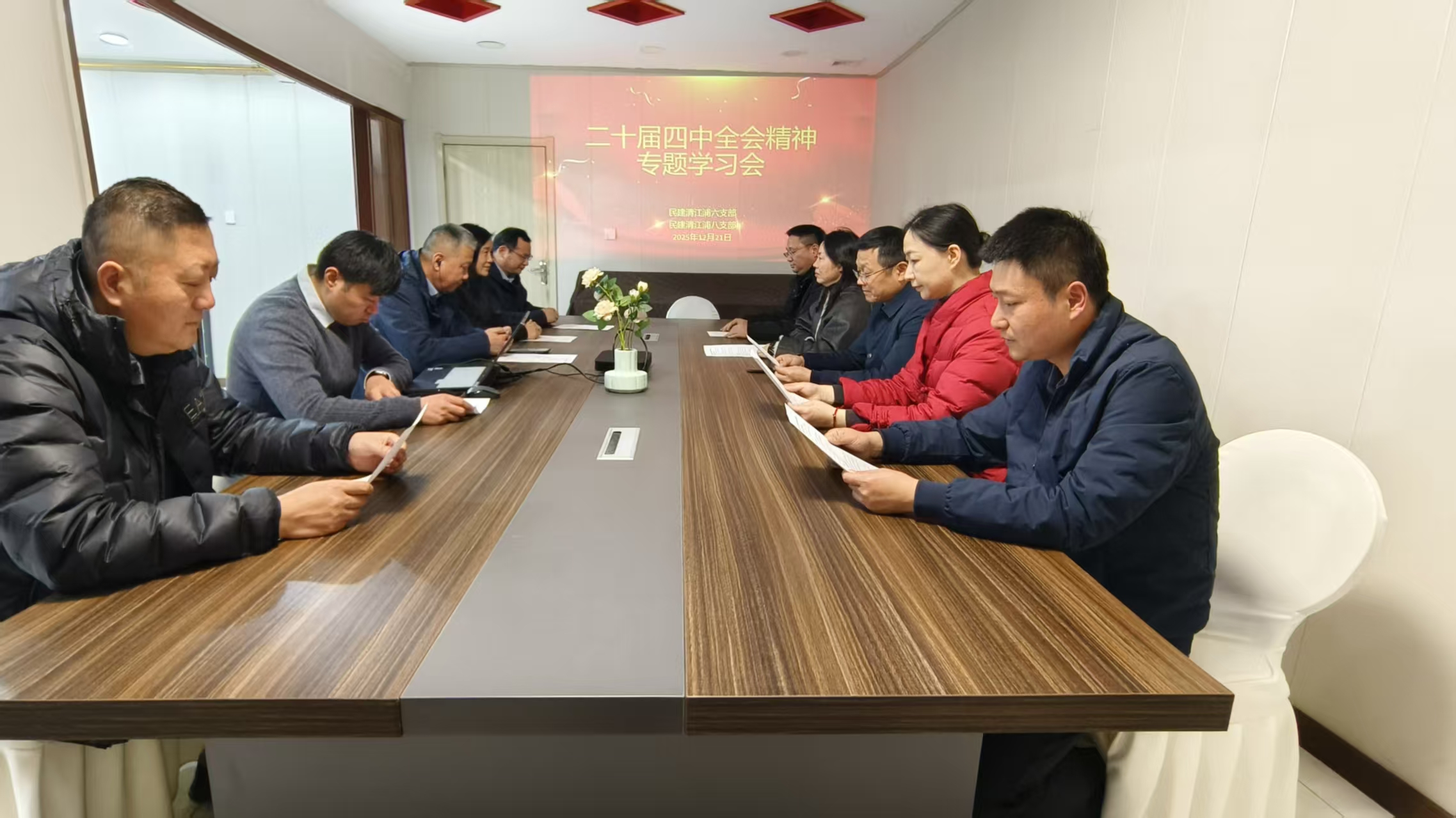 12月21日,民建清江浦区五、六、八支部班子成员集中开展中共二十届四中全会精神学习,本次活动由民建淮安市委会委员、清江浦区基层委主委、区工商联主席周海山领学。