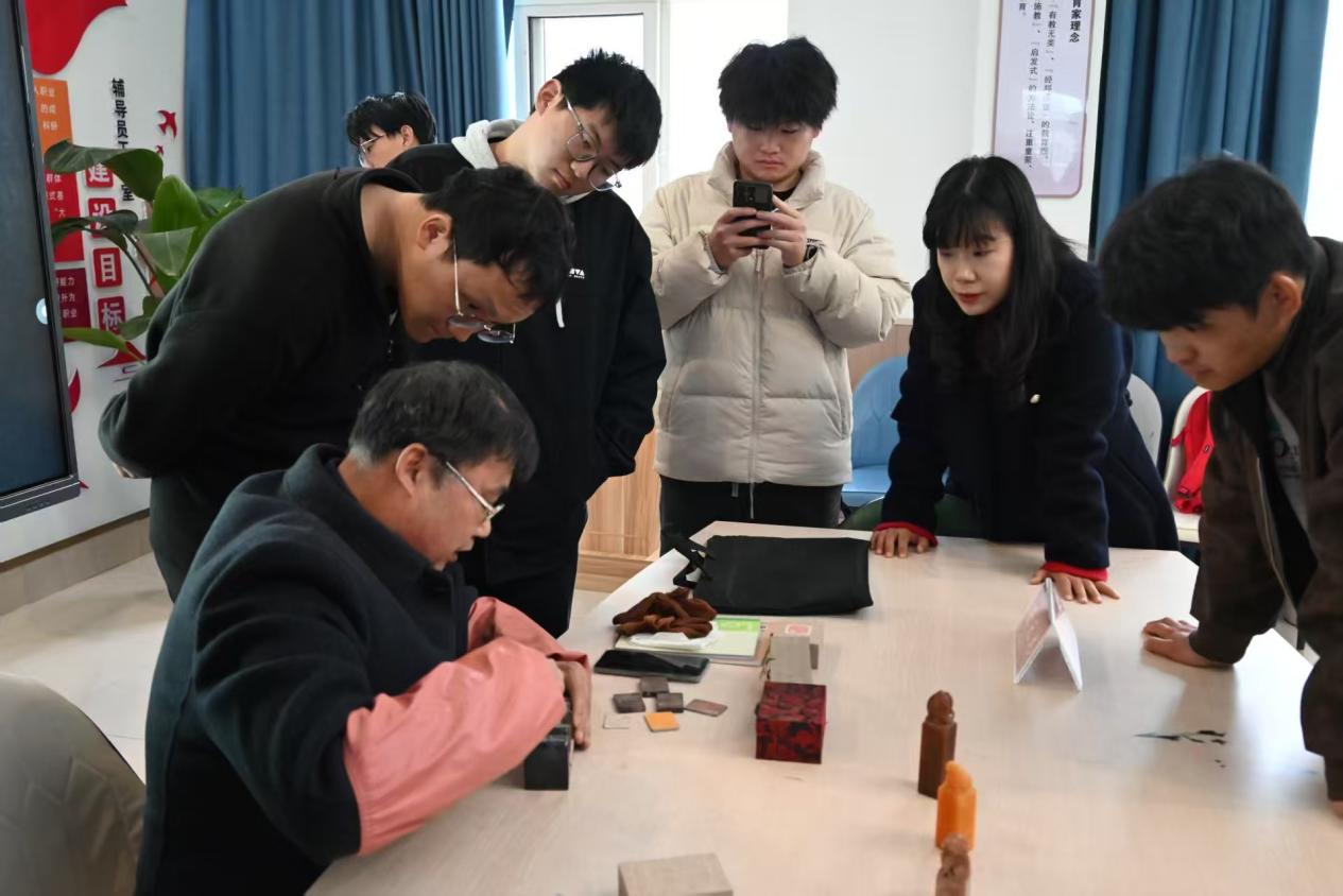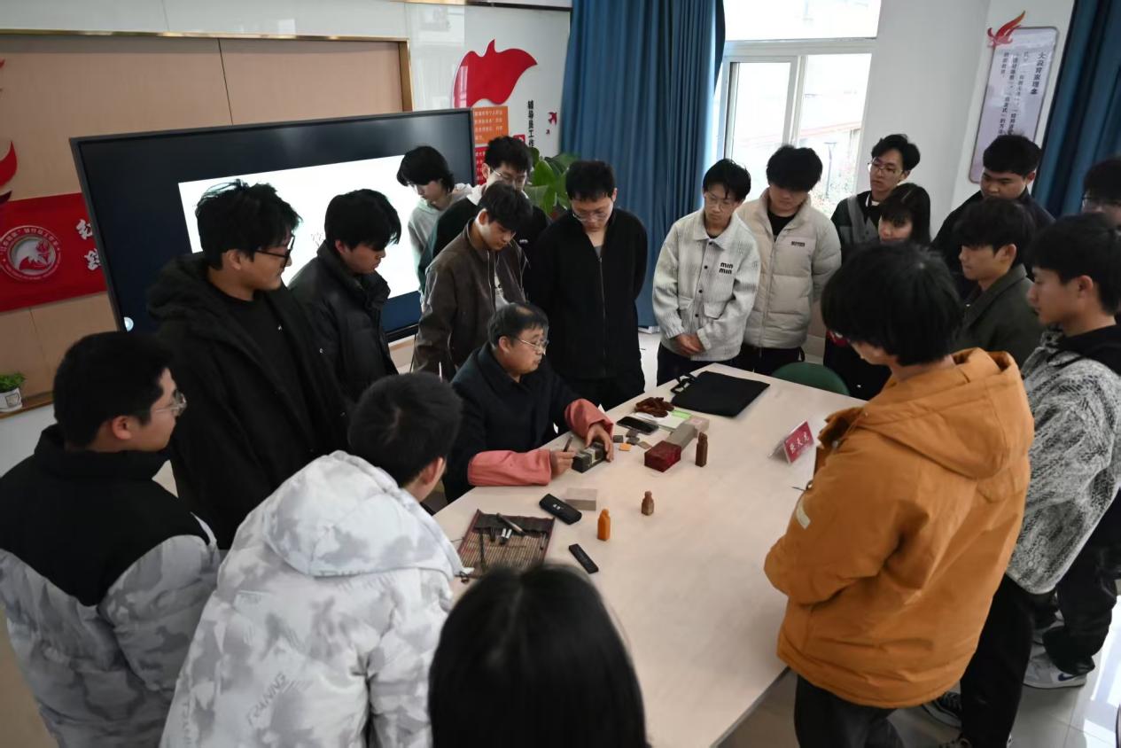 2026年3月20日下午,在电子信息学院安澜书院,张天龙会员从篆刻历史渊源、篆刻工具书(字典字库)开始到篆刻刀的品种、材质,中国四大名石产地和特征,如何辨识各种石材和收藏养护,篆刻印泥的分类、选择和使用,篆刻用纸……书法练习对篆刻的促进作用等方面讲授了与篆刻相关的知识。