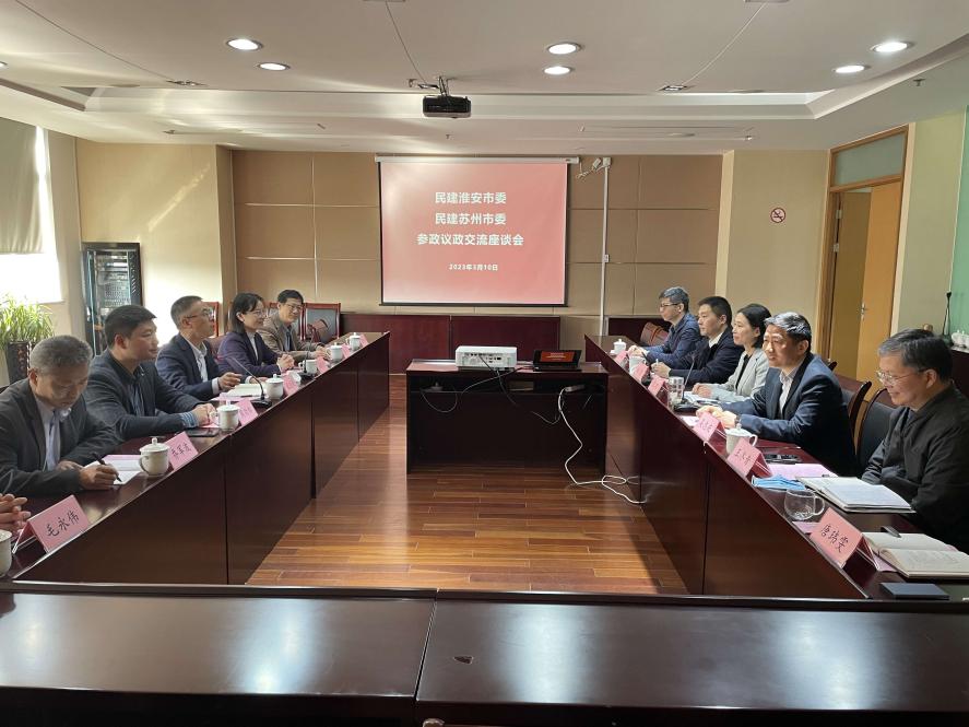 考察组一行参观了民建苏州市委机关建设,并召开交流座谈会。会上,民建淮安市委专职副主委庞进亮和民建苏州市委副主委沈黎分别介绍了两地民建参政议政工作开展情况。民建苏州市委秘书长吴忠庆、调研工作委员会主任杨哲、民建苏州市工业园区基层委主委王冬青等在会上分别就苏州民建在政党协商课题调研、调研委员会工作及基层组织参政议政等方面的经验进行了介绍,与会人员还就如何提高社情民意工作质量、抓好骨干队伍建设等进行了热烈的交流。