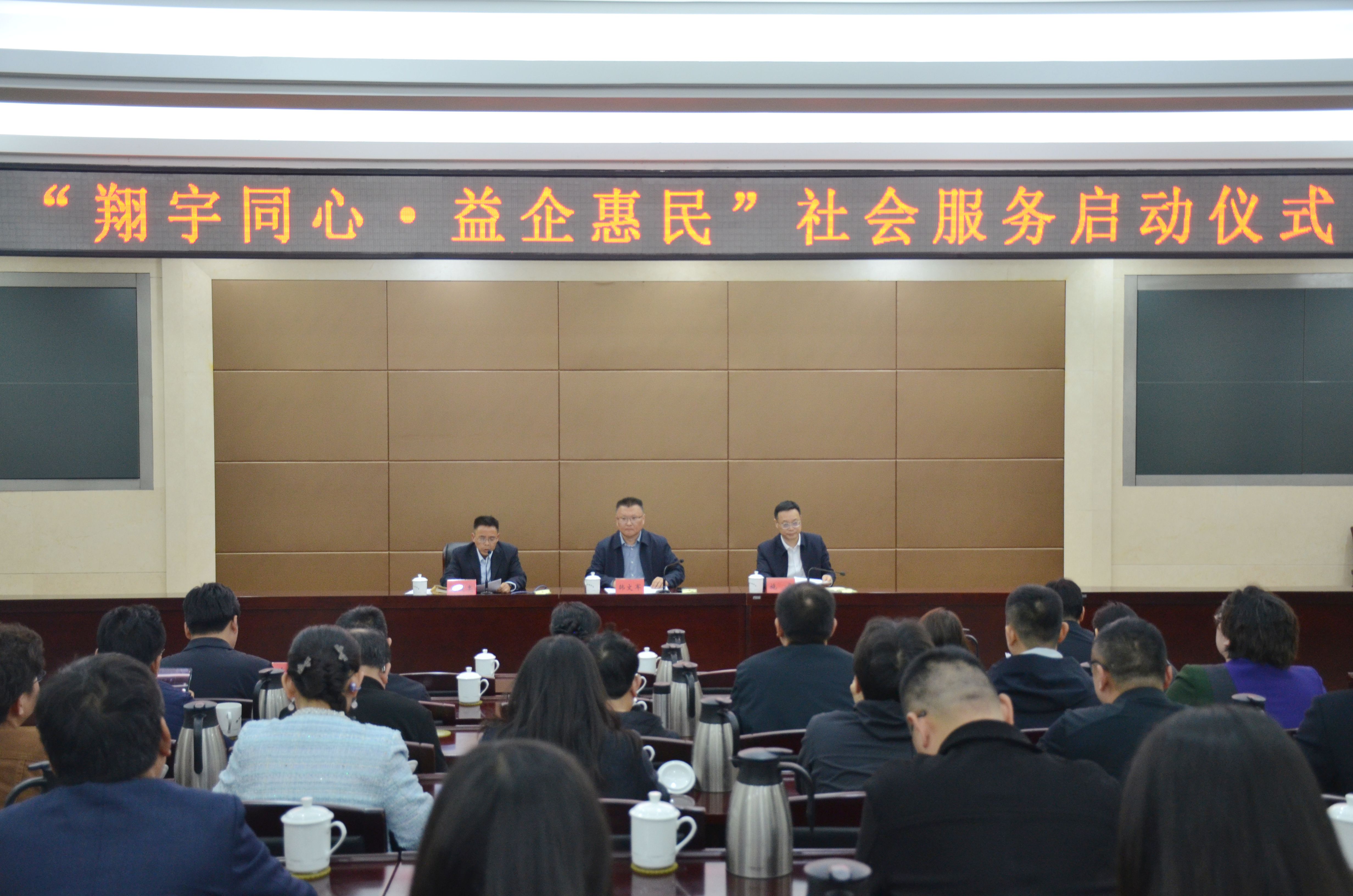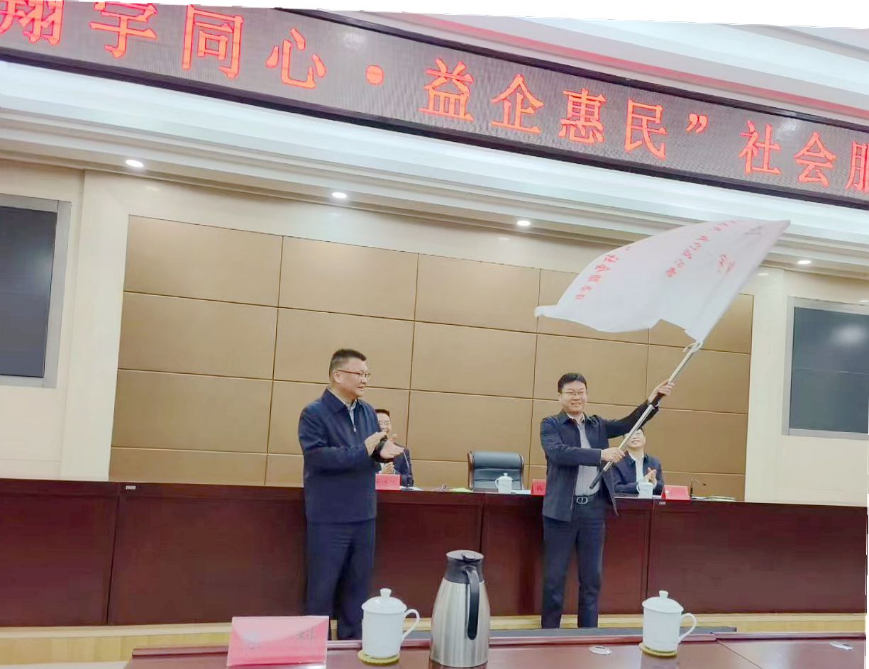 随后,韩文军为“翔宇同心·益企惠民”社会服务队授旗,并为队长赵峰颁发聘书。 赵峰代表服务队作表态发言。他表示,将不负重托、恪尽职守,带领全体队员牢记服务宗旨,强化专业素养,以饱满热情、务实作风,扎实开展各项服务活动,用心用情当好企业发展的“服务员”、惠民政策的“宣传员”、政企沟通的“联络员”,确保社会服务落地见效。