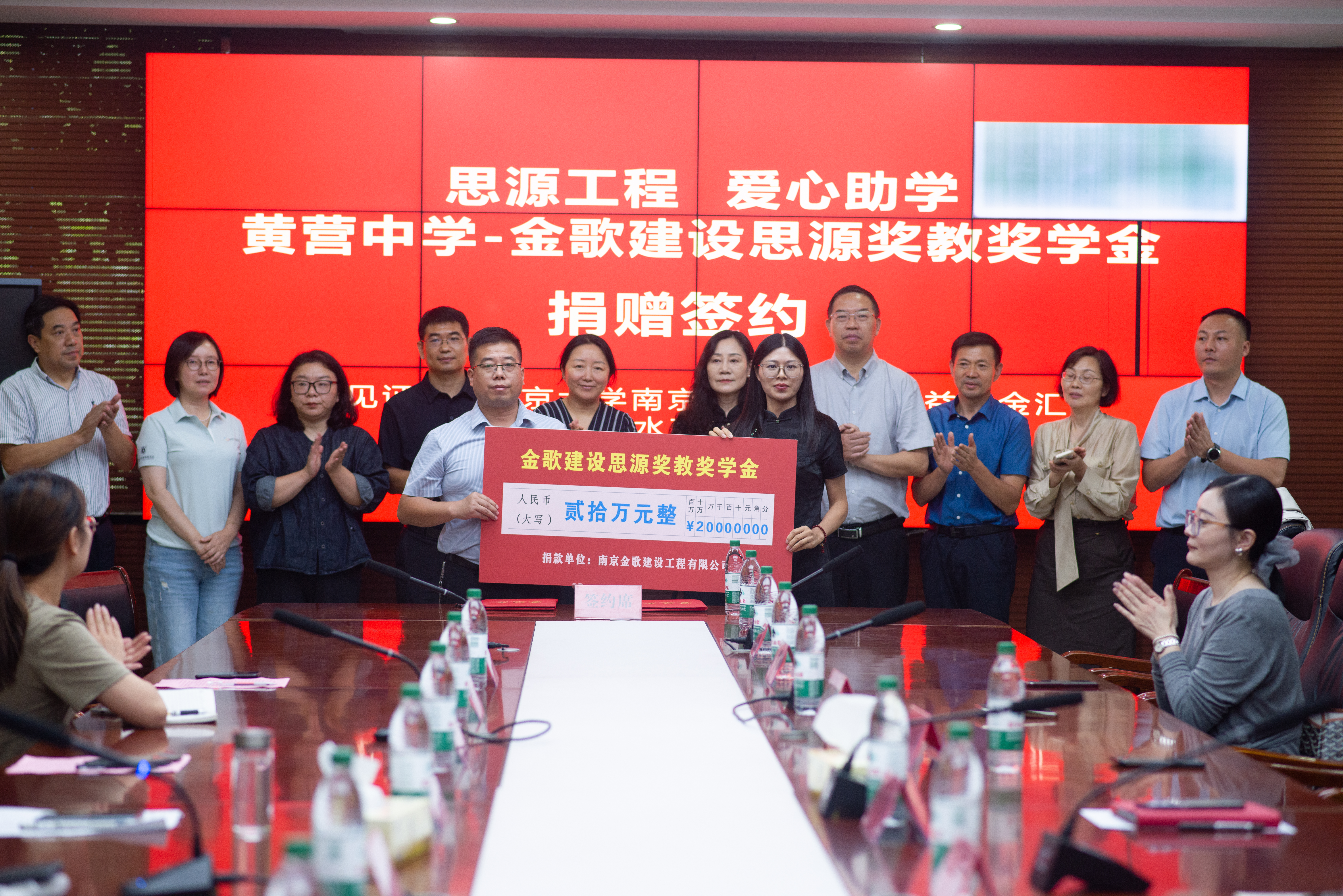 捐赠仪式上,民建六合区基层委主委于鹏介绍捐赠活动背景及概况。南京金歌建设工程有限公司向涟水县黄营中学捐赠20万元奖教奖学金,并签订捐赠协议。 涟水县黄营中学校长代表全校师生向民建六合区基层委、南京金歌建设工程有限公司表达了感谢。并保证学校将严格管理和使用这笔奖教奖学金,充分发挥其激励作用。同时将带领全校师生不断提升学校的办学质量、育人水平,努力建设让家长放心、让社会满意的学校。 民建六合区基层委副主委、金歌建设工程有限公司董事长陈大金表示重回母校开展民建六合区基层委“思源工程,爱心助学”项目,南京金歌建设设立“金歌建设思源奖教奖学金”秉承“饮水思源,回报社会”的理念,通过奖教奖学这一举措助力涟水教育事业,为黄营中学的发展注入新的活力,激励表现优异的学生,支持老师队伍的建设和发展。同时用自己的亲身经历鼓励在场学生,贫穷和困难都是暂时的,心怀梦想,不懈努力,一定会闯出想要的人生!