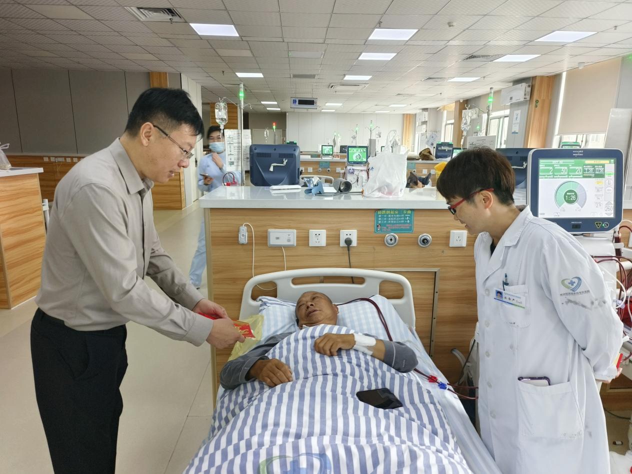 中秋佳节情意浓,关怀慰问暖人心,中秋当日,淮安民建市委会委员、经开区总支主委赵峰带领民建经开区二支部会员,走进淮安经开区医院,开展尿毒症患者专项关怀慰问活动。 活动中,赵峰详细询问他们的治疗情况与生活需求,亲手送上中秋慰问金,将节日的祝福与民建组织的温暖送到患者心坎上。一句句关切叮嘱、一声声节日问候,不仅驱散了患者因治疗带来的阴霾,更让大家在团圆佳节感受到来自民建大家庭的关怀与社会温情,以实际行动践行了民建会员服务群众、奉献社会的责任担当。据悉活动期间总共慰问130位血透患者,慰问金总计13000元,费用由赵峰和二支部会员共同募集。 |