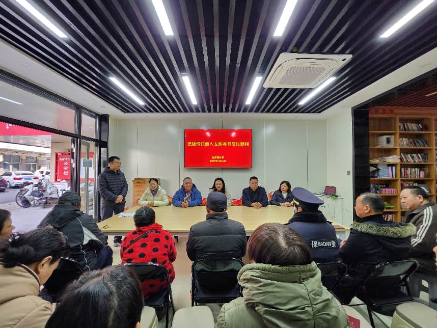 2026年2月11日下午,民建清江浦区八支部走进清江街道施家桥社区,开展春节捐赠慰问活动。支部主委毕雷雨、副主委李晓燕向社区30户困难群众送去节日关怀。