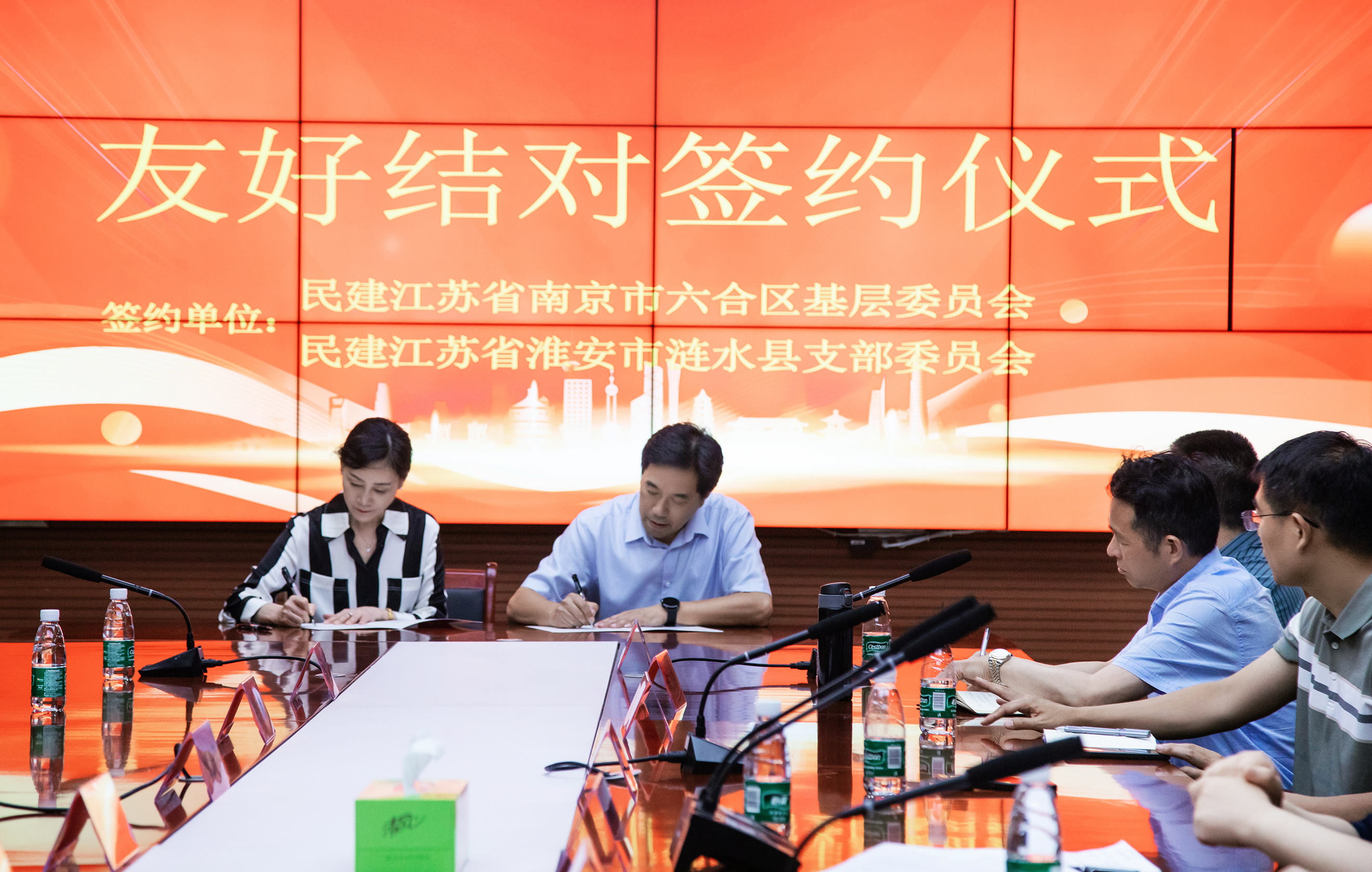 6月9日,民建南京市委专职副主委杨卫青、组织处处长马晶、民建六合基层委主委葛新泉一行到涟水考察学习,并与民建涟水支部签订友好结对协议。涟水县委常委、统战部部长刘双喜,县委常委、宣传部部长郎跃明,县政府党组成员、副县长徐勇,民建市委委员、综合总支主委、涟水县地方金融监督管理局局长郑志梅出席活动。