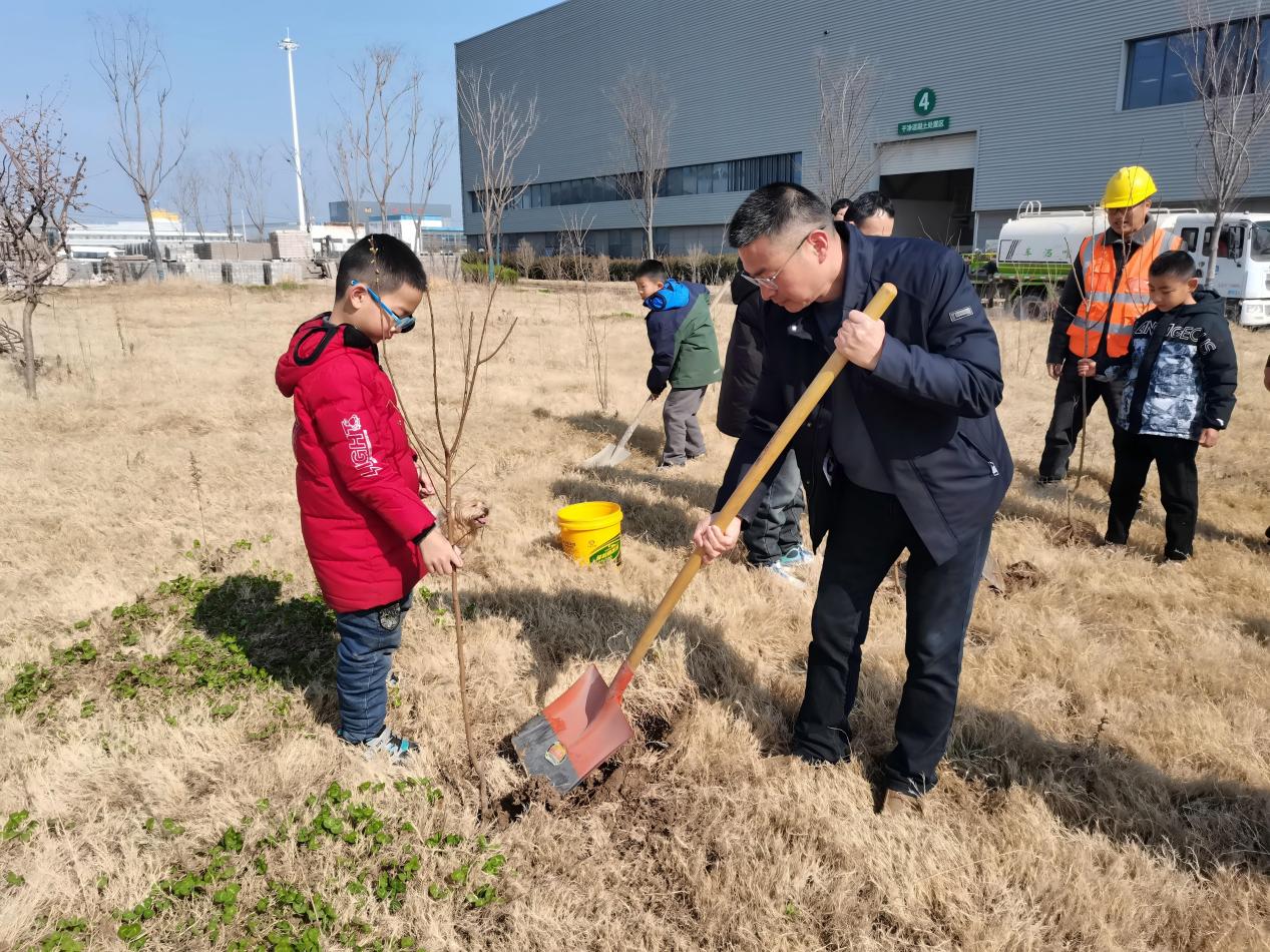 上午9时30分,植树活动正式开启。现场一派热火朝天的劳动景象,民建会员与电信党员、家属们分工协作、默契配合,挥锹铲土、扶正树苗、填土踩实、提水浇灌,每一个步骤都严谨细致、一丝不苟。不少参与者特意带着孩子前来,让孩子们在亲手劳作中亲近自然、体验劳动乐趣,将绿色环保的种子播撒在孩子们心中,引导其从小树立生态保护意识和正确价值观念。经过一番辛勤耕耘,一株株新苗迎风挺立,为初春的大地勾勒出盎然生机,也成为民建与电信党建统战合作的生动见证。 植树添绿之余,全体人员在厂区负责人的带领和讲解下,近距离观摩建筑垃圾破碎、筛分、再生利用的全流程。原本的砖头瓦块、建筑废料,经先进技术处理后摇身一变,成为可循环使用的绿色建材,这一“变废为宝”的过程让在场人员连连称赞。大家认真聆听厂区关于资源化利用率、循环经济发展、绿色建材城市应用等方面的介绍,小朋友们更是充满好奇,不断向负责人提问交流。